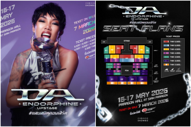 - “ดา เอ็นโดรฟิน” คืนเวทีตามเสียงเรียกร้อง! ชวนแฟนเพลง UPSTAGE ความแสบ ปล่อยความสนิทให้สุดเวที ใน DA ENDORPHINE UPSTAGE #แสบสนิทคอนเสิร์ต 23 ก.พ. 2569