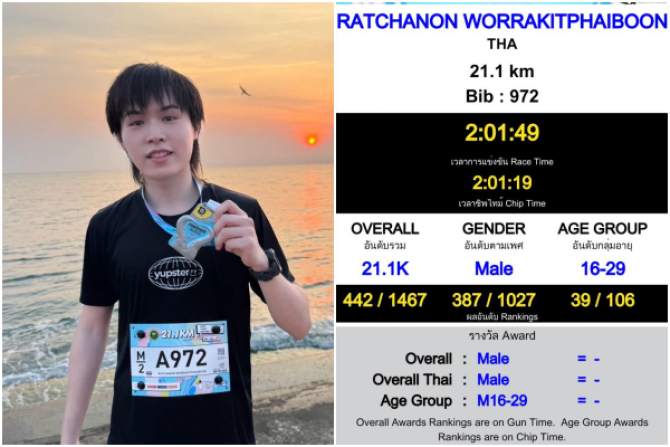 “มังกร” (รัชชานนท์ วรกิจไพบูลย์) มือกลองวง Yes Indeed ของค่าย White Music ใจสู้เกินร้อย ลงสนาม Scenic 1/2 Marathon Pranburi 2026 ฮาล์ฟแรกในชีวิต 21.1 กิโลเมตร ทั้งที่ซ้อมไม่เต็มที่ เพราะมัวปั่นธีสิสรัวๆ แต่ยังทำเวลาได้ 2.01 ชั่วโมง แบบภูมิใจสุดๆ เจ้าตัวรับตื่นเต้นหนัก ต้องสู้กับใจตัวเองตลอดทาง แต่พอเข้าเส้นชัยคือโล่งและฟิ
