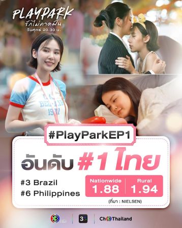 ออกอากาศแค่อีพีเดียวก็เดิ นเกมแรง กับคู่ “แทน ดวงแก้ว” และ “ญดา นริลญา” ที่ฟาดความปังลงซีรีส์ “Play Park รักไม่คาดฝัน” จนพาแฮชแท็ก #PlayParkEP1 พุ่งทะยานติ ดเทรนด์ X อันดับ 1 ประเทศไทย สมการรอคอยของแฟน ๆ ที่เฝ้ารอกันอยู่ไม่น้อย