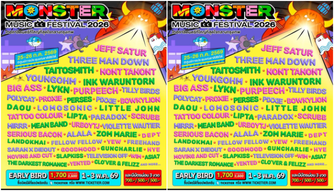 ตอกย้ำเทศกาลดนตรีที่ใหญ่ที่สุดใจกลางกรุงเทพฯ GMM SHOW ประกาศความยิ่งใหญ่! ส่ง ‘Monster Music Festival 2026’ จัดเต็มความสนุกศูนย์การประชุมแห่งชาติสิริกิติ์ 25-26 กรกฎาคมนี้