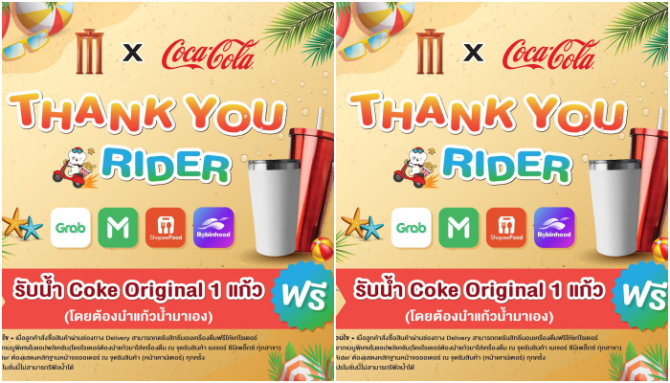 - เมเจอร์ ซีนีเพล็กซ์ กรุ้ป จับมือ ไทยน้ำทิพย์ จัดแคมเปญ “Major x Coke Thank You Riders” 15 เม.ย. 2569