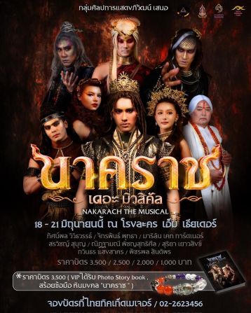 เปิดตำนาน นาคาแห่งลุ่มน้ำบูรพา มหากาพย์ ความรัก ความศรัทธา “นาคราช เดอะ มิวสิคัล”ละครเวที โดยกองทุนส่งเสริมศิลปะร่วมสมัย สำนักงานศิลปวัฒนธรรมร่วมสมัย กระทรวงวัฒนธรรม ร่วมสนับสนุน “กลุ่มศิลปการแสดงภิวัฒน์”
