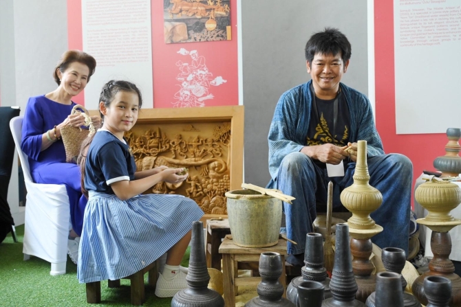 ภายในงานพบกับกิจกรรมแบบครบครันทั้งชม ชอป เรียนรู้ อาทิ โซนจัดแสดงและจำหน่ายผลิตภัณฑ์มูลนิธิส่งเสริมศิลปาชีพในสมเด็จพระนางเจ้าสิริกิติ์ พระบรมราชินีนาถ พระบรมราชชนนีพันปีหลวง ที่รวบรวมงานหัตถศิลป์ไทยคุณภาพ อาทิ ผ้าไหมผ้าฝ้ายทอมือ งานจักสาน และเครื่องปั้นดินเผา โซนจัดแสดงและจำหน่ายงานหัตถศิลป์ไทยชั้นครูศิลป์ของแผ่นดิน ครูช่างศิลปหัตถกรรม และทายาทช่างศิลปหัตถกรรม จากทั่วประเทศกว่า 70 ราย นอกจากนี้ ยังมีกิจกรรมสาธิตและทดลองทำงานหัตถศิลป์ไทย ที่เปิดโอกาสให้ลงมือสร้างสรรค์ผลงานด้วยตนเอง โดยมี คุณดวงดาว จารุจินดา นักแสดงและ KOLรุ่นใหญ่ ควงหลานสาวน้องมียา อะมีณยา จารุจินดา ร่วมด้วย แพม สุชานุช นักแสดงสาวสวยจาก ละครเรื่อง “บ้านนางรำ” ออกอากาศทาง ช่อง 7 HD ร่วมเวิร์คช็อป ในครั้งนี้ และกิจกรรมพิเศษ “อัตลักษณ์แห่งสยาม Exclusive Auction” การประมูลงานหัตถศิลป์ไทยระดับมาสเตอร์พีซกว่า 40 ผลงาน จัดขึ้นวันที่ 25 เมษายน 2569 ตั้งแต่ 16.30 น. เป็นต้นไป ณ ห้อง Moonlight Hall พิพิธภัณฑ์บ้าน Jim Thompson