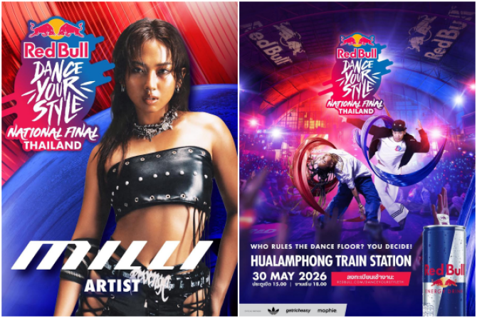 วงการสตรีทแดนซ์ของประเทศไทยกำลังจะลุกเป็นไฟกับการแข่งขัน อันดุเดือด และการแสดงจากศิลปินแรปเปอร์แถวหน้าระดับโลกอย่าง MILLI บนเวที Red Bull Dance Your Style Thailand 2026 รอบชิงชนะเลิศระดับประเทศ ณ สถานีรถไฟกรุงเทพ (หัวลำโพง) ในวันเสาร์ที่ 30 พฤษภาคม โดยสถานที่แห่งประวัติศาสตร์นี้ จะกลายเป็นเวทีโชว์ฝีเท้าของนักเต้นตัวท็อป 16 คน ในการชิงตำแหน่งตัวแทน ประเทศเพื่อไปแข่งขันบนเวทีโลกต่อไป