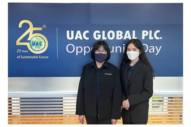 นางสาวนิลรัตน์ จารุมโนภาส CFO และ นางสาวอลิสา ชีวะเกตุ Corporate Image & Treasury Manager บมจ. ยูเอซี โกลบอล (UAC) ร่วมนำเสนอข้อมูลบริษัทฯ ภายในงานบริษัทจดทะเบียนพบนักลงทุน (Opportunity Day) หลังประกาศผลการดำเนินงานงวด 9 เดือน ปี 2564 กำไรสุทธิโตแตะ 192.23 ล้านบาท เพิ่มขึ้น 17.54 % และรายได้จากการขายและการให้บริการ จำนวน 1,130.78 ล้านบาทเพิ่มขึ้น 13.52 % ส่วนไตรมาส 4/64 คึกคักจากการฟื้นตัวของธุรกิจ และการบุ๊กกำไรจากเงินปันผลจากบริษัทร่วมทุน BBF จำนวน 105.56 ล้านบาท พร้อมเดินหน้าการลงทุนด้าน Energy Efficiency, Bio Circular Economy และ EV Station ทั้งในประเทศ และกลุ่มประเทศ CLMV หนุนรายได้ปีนี้เป็นไปตามเป้า 10% ณ สำนักงานใหญ่ เมื่อเร็วๆนี้