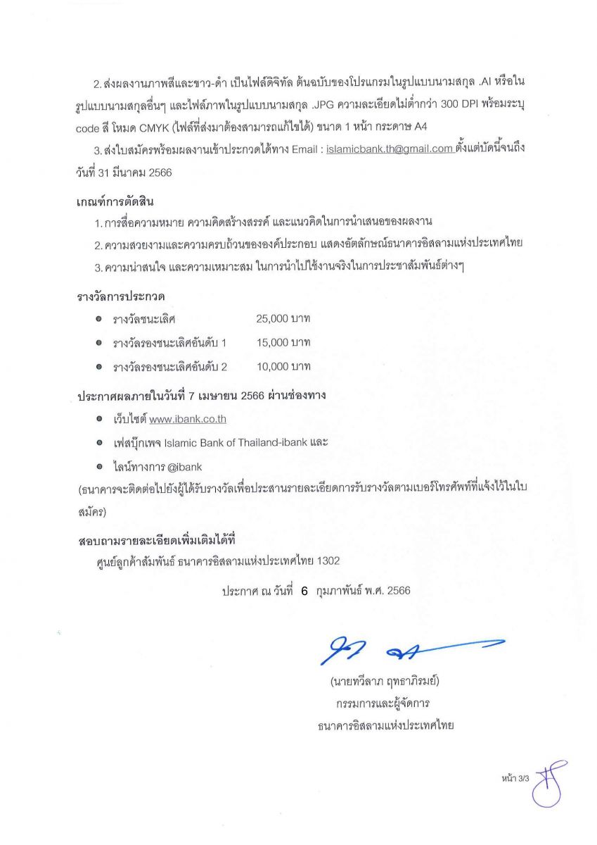3. ส่งใบสมัครพร้อมผลงานเข้าประกวดได้ทางEmail: islamicbank.th@gmail.com ตั้งแต่บัดนี้จนถึงวันที่ 31 มีนาคม 2566