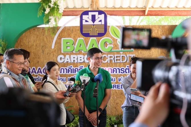 นายฉัตรชัย ศิริไล ผู้จัดการธนาคารเพื่อการเกษตรและสหกรณ์การเกษตร (ธ.ก.ส.) เปิดเผยว่า ธ.ก.ส. ได้ขับเคลื่อนภารกิจด้านการรักษาสิ่งแวดล้อมและทรัพยากรมาอย่างต่อเนื่อง เริ่มตั้งแต่การสนับสนุนให้เกษตรกรปลูกป่าตามพระราชดำริ “ปลูกป่า 3 อย่าง ประโยชน์ 4 อย่าง” และยกระดับไปสู่โครงการธนาคารต้นไม้และชุมชนไม้มีค่าจนปัจจุบันมีชุมชนเข้าร่วมโครงการจำนวน 6,814 ชุมชน มีต้นไม้ขึ้นทะเบียนกว่า 12.4 ล้านต้น มีสมาชิก 124,071 คน มูลค่าต้นไม้ในโครงการกว่า 43,000 ล้านบาท นอกจากนี้ ยังมีการนำต้นไม้ที่ปลูกมาแปลงเป็นสินทรัพย์ เพิ่มมูลค่าให้กับที่ดินและนำมาใช้เป็นหลักประกันเงินกู้กับ ธ.ก.ส. ทำให้สมาชิกในชุมชนมีรายได้จากผลิตภัณฑ์ที่ได้จากต้นไม้/ป่าไม้ ปีละ 116 ล้านบาท และเพื่อเป็นการต่อยอดการดำเนินงานให้ตอบโจทย์เป้าหมายการขับเคลื่อนประเทศไทยไปสู่ความเป็นกลางทางคาร์บอน ภายในปี ค.ศ. 2050 และบรรลุเป้าหมายการปล่อยก๊าซเรือนกระจกสุทธิเป็นศูนย์ (Net Zero GHG Emission) ในปี ค.ศ. 2065 ธ.ก.ส. ได้จัดตั้งโครงการ BAAC Carbon Credit ขับเคลื่อนการซื้อ – ขายคาร์บอนเครดิตภาคป่าไม้อย่างเป็นทางการในประเทศไทย ตามโครงการลดก๊าซเรือนกระจกภาคสมัครใจตามมาตรฐานประเทศไทย (Thailand Voluntary Emission Reduction Program: T-VER) ซึ่งมีการซื้อ-ขายครั้งแรกไปแล้วที่ชุมชนธนาคารต้นไม้บ้านท่าลี่และบ้านแดง จังหวัดขอนแก่น จำนวน 400 ตันคาร์บอน โดย ธ.ก.ส. รับซื้อในราคากึ่ง CSR ตันละ 3,000 บาท คิดเป็นเงินรวม 1.2 ล้านบาท