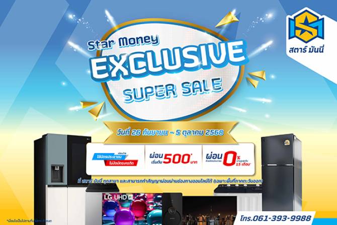 แม่บ้าน พ่อบ้านห้ามพลาด! บมจ.สตาร์ มันนี่ (STARM) ออกโปรเด็ด "Star Money Exclusive Super Sale 2025" ยกทัพเครื่องใช้ไฟฟ้ามาลดสูงสุดถึง 50% พร้อมรับสิทธิ์ลุ้นรางวัลใหญ่มูลค่ากว่า 340,000 บาท ถึง 3 ต่อ* โดยต่อที่หนึ่งรับสิทธิ์แลกซื้อ, ต่อที่สองรับส่วนลดสุดพิเศษ และต่อที่สามของแถมสุดพรีเมียม เริ่มแล้ววันนี้ – 5 ตุลาคม 2568 เท่านั้น!!....เป็นเจ้าของเครื่องใช้ไฟฟ้าได้ง่ายๆ ใช้เพียงบัตรประชาชน ผ่อนถูก เริ่มต้นเพียงเดือนละ500บาท*… โปรเด็ดจุกๆ แบบนี้ไม่ได้มาบ่อย… STARM เข้าถึงง่าย ไม่ง้อบัตรเครดิต คาดครึ่งปีหลังยอดปล่อยสินเชื่อพุ่งแรง! เลยคร้าาบบ!!
