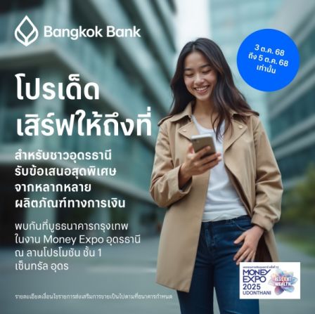 การเงินเพื่ออนาคต - นางสาวพจณี คงคาลัย ผู้ช่วยผู้จัดการใหญ่ สายลูกค้าบุคคล นายอภิรักษ์ ศรีตระกูลเกียรติ ผู้จัดการภาคตะวันออกเฉียงเหนือ 2 นายรุ่งโรจน์ พิพัฒนมงคล ผู้จัดการสาขาอุดรธานี พร้อมด้วยคณะผู้บริหารและพนักงาน ธนาคารกรุงเทพ จำกัด (มหาชน) ร่วมให้การต้อนรับ นายกอบศักดิ์ ภูตระกูล กรรมการรองผู้จัดการใหญ่ ธนาคารกรุงเทพ จำกัด (มหาชน) ประธานกรรมการ สภาธุรกิจตลาดทุนไทย (FETCO) ในฐานะประธานเปิดงาน นายสันติ วิริยะรังสฤษฎ์ ประธานจัดงานมหกรรมการเงิน Money Expo และประธานพิธีเปิดงานมหกรรมการเงินอุดรธานี ครั้งที่ 12 (Money Expo Udonthani 2025) พร้อมด้วยนางสาวภาคนี วิริยะรังสฤษฎ์ ประธานจัดงานร่วมมหกรรมการเงิน Money Expo ในโอกาสให้เกียรติเข้าร่วมพิธีเปิดบูธธนาคารกรุงเทพ ซึ่งจัดขึ้นภายใต้แนวคิด “It’s all connected with Bangkok Bank” เชื่อมต่อทุก Lifestyle ของลูกค้าในทุกๆ มิติ โดยธนาคารได้คัดสรรผลิตภัณฑ์และบริการทางการเงิน โดยเฉพาะกลุ่มผลิตภัณฑ์ที่ช่วยสร้างความมั่นคงในชีวิตให้กับตัวเองและครอบครัว อาทิ ผลิตภัณฑ์เงินฝากที่ตอบโจทย์การออมและสร้างวินัยทางการเงิน ผลิตภัณฑ์สินเชื่อสำหรับเสริมสภาพคล่องและขยายโอกาสทางธุรกิจ ผลิตภัณฑ์กลุ่มประกันภัยและประกันชีวิตเพื่อคุ้มครองความเสี่ยงและความมั่นคงของครอบครัว ผลิตภัณฑ์กองทุนรวมสำหรับผู้ที่ต้องการวางแผนการลงทุนในระยะยาว และบริการทางการเงินดิจิทัลที่ทันสมัย สะดวก รวดเร็ว และปลอดภัย ซึ่งได้รับความสนใจจากพี่น้องชาวจังหวัดอุดรธานีและจังหวัดใกล้เคียงอย่างต่อเนื่อง