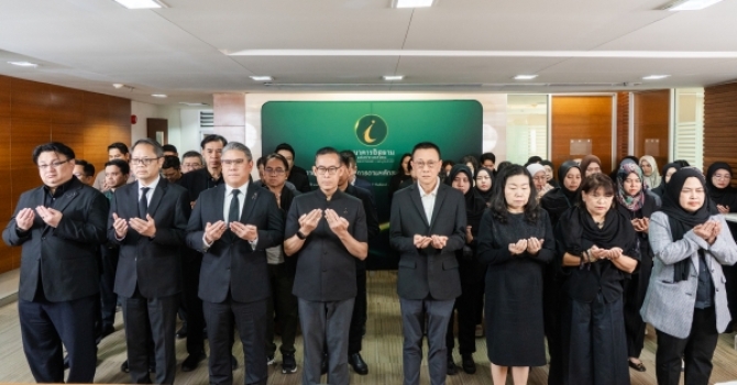 ธนาคารอิสลามแห่งประเทศไทย (ไอแบงก์) จัดพิธีขอดุอาอ์เพื่อร่วมวิงวอนต่อเอกองค์อัลลอฮ์ (ซุบฮานะฮูวะตะอาลา) ให้ทรงประทานความคุ้มครองและบรรเทาความเดือดร้อนแก่พี่น้องประชาชนในพื้นที่ภาคใต้ที่กำลังประสบอุทกภัย โดยมี นายยงยุทธ ชัยพรหมประสิทธิ์ ประธานกรรมการธนาคาร เป็นประธานในพิธี พร้อมด้วย ดร.ทวีลาภ ฤทธาภิรมย์ กรรมการและผู้จัดการธนาคาร คณะกรรมการธนาคาร คณะที่ปรึกษาชะรีอะฮ์ ผู้บริหาร และพนักงานธนาคาร เข้าร่วม เมื่อวันที่ 27 พฤศจิกายน 2568 ณ ธนาคารอิสลามแห่งประเทศไทย สำนักงานใหญ่ ชั้น 21 และผ่านระบบออนไลน์