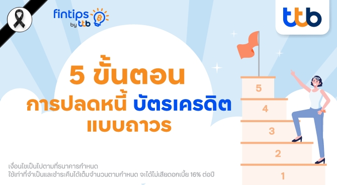 ปัญหาหนี้บัตรเครดิตเป็นเรื่องที่หลาย ๆ คนที่พบเจอ และบางครั้งก็รู้สึกเหมือนเป็นวงจรที่ไม่มีวันจบสิ้น นั่นเป็นเพราะดอกเบี้ยสูงถึง 16% ต่อปี และถ้าหากไม่ได้วางแผนจัดการอย่างเป็นระบบก็จะกลายเป็นภาระสะสมเพิ่มขึ้นเรื่อย ๆ ไม่จบไม่สิ้น แต่อย่างไรก็ตาม การปลดหนี้บัตรเครดิตให้หมดไปนั้นไม่ใช่เรื่องที่เป็นไปไม่ได้ หากรู้จักการวางแผนและปรับเปลี่ยนพฤติกรรมการเงินอย่างจริงจัง วันนี้ fintips by ttb #เรื่องเงินที่รู้จริงแบบเพื่อนที่รู้ใจ จะมาแนะนำ 5 ขั้นตอนสำคัญ ที่ช่วยให้ปลดหนี้บัตรเครดิตได้แบบถาวร และไม่กลับไปเป็นหนี้ซ้ำอีก