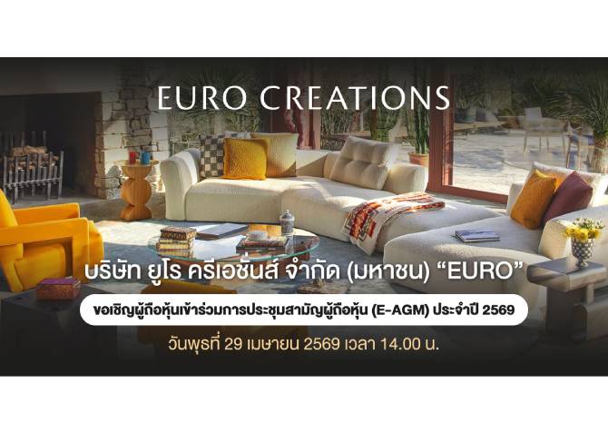 EURO เชิญชวนผู้ถือหุ้นร่วมประชุม E-AGM 29 เม.ย.นี้