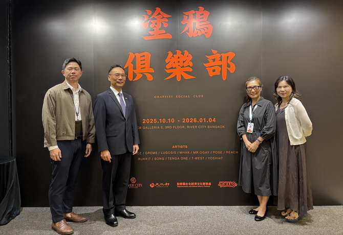 เมื่อวันที่ 5 พฤศจิกายน พ.ศ.2568 นายหลัน เซี่ย หลี่ ผู้แทนรัฐบาล สำนักงานเศรษฐกิจและวัฒนธรรมไทเป ประจำประเทศไทย (สำนักงานฯ) เดินทางไปยังริเวอร์ ซิตี้ แบงค็อก (River City Bangkok) เพื่อเยี่ยมชมนิทรรศการ “GRAFFITI SOCIAL CLUB” โดยนายหลัน เซี่ย หลี่ ได้สัมผัสกับซอฟต์พาวเวอร์ด้านศิลปวัฒนธรรมของไทย ทั้งยังรู้สึกชื่นชมผลงานกราฟฟิตี้ของศิลปินไทยและไต้หวันที่จัดแสดงเป็นอย่างมาก