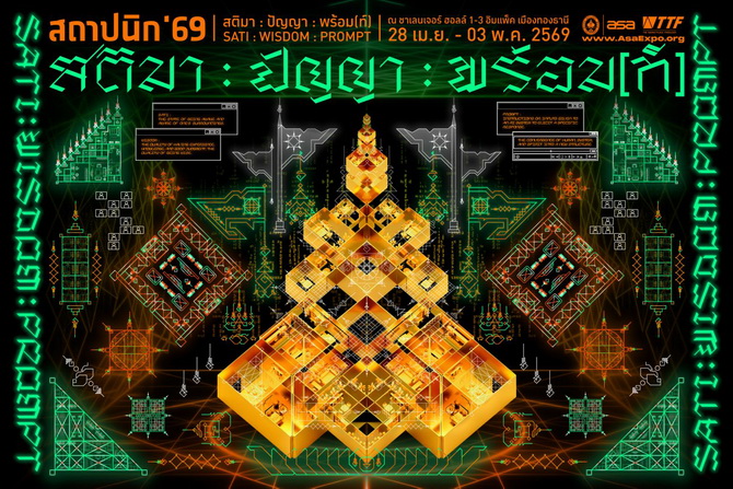 ภายในงาน สถาปนิก’69 โดยตั้งใจชี้ให้เห็นศักยภาพ แนวคิด และบทบาทที่กําลังเปลี่ยนแปลงของนักออกแบบร่วมสมัย ในการมีส่วนกําหนดทิศทางของสังคมไทยควบคู่ไปกับบริบทระดับนานาชาติ ต่อด้วยส่วนนิทรรศการงานวิชาการ ซึ่งรวบรวมผลงานออกแบบสถาปัตยกรรมมาจัดแสดงพร้อมกัน 3 กิจกรรม ได้แก่ 1.นิทรรศการประกวดแบบเชิงแนวคิดระดับนานาชาติ (ASA Experimental Design Competition) ภายใต้แนวคิด “ปัญญาร่วมสรรค์ Hybridized Wisdom” 2.นิทรรศการ Young Generation Workshop นิทรรศการผลงานสถาบันการศึกษา : ASA EDUCATIONAL INSTITUTE นําเสนอผลงานการออกแบบเชิงปฏิบัติการ โดยเป็นการร่วมมือของคณาจารย์และ นิสิต นักศึกษา จากสถาบันการศึกษาทางสถาปัตยกรรมทั่วประเทศ ตีความและนําเสนอแนวคิด “CRAFT” ผ่าน “SATI : WISDOM : PROMPT — Embrace Artificial Intelligence / Honor Human Craft and Timeless Wisdom” เพื่อตั้งคําถามต่อวิชาชีพสถาปัตยกรรมว่า เราจะก้าวเดินอย่างไรท่ามกลางความเปลี่ยนแปลงระดับโลกและเทคโนโลยีที่เข้ามาแทนที่มนุษย์ โดยให้แต่ละสถาบันตีความ “DIGITAL CRAFT” ผ่านการอ่าน/วิเคราะห์ภูมิปัญญาช่าง (CRAFT) และ การเชื่อมโยงเทคโนโลยีดิจิทัล