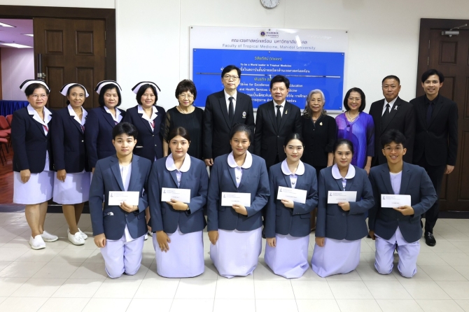อ.สุรวัฒน์ ชมภูพงษ์ ประธานมูลนิธิช่วยนักเรียนที่ขาดแคลน ในพระบรมราชินูปถัมภ์ (ม.น.ข.) ให้เกียรติเป็นประธานในพิธีมอบทุนการศึกษาหลักสูตรประกาศนียบัตรผู้ช่วยพยาบาล โดยมี รศ.ดร.วีระพงษ์ ภูมิรัตนประพิณ คณบดีคณะเวชศาสตร์เขตร้อน มหาวิทยาลัยมหิดล ให้การต้อนรับอย่างอบอุ่น ในโอกาสนี้ ประอรพรรณ อยู่สถาพร ที่ปรึกษา ม.น.ข. ผศ.ดร.วิรชฎา บัวศรี มณฑา ภู่เพียนเลิศ เฉลิมชัย เขียวประดิษฐ์ และอรทัย ห้าวหาญ พร้อมด้วยคณาจารย์เข้าร่วมพิธีด้วยความปลาบปลื้มที่ได้ให้การสนับสนุนโอกาสทางการศึกษา และสร้างอนาคตที่มั่นคงให้แก่นักศึกษาต่อไป ณ คณะเวชศาสตร์เขตร้อน มหาวิทยาลัยมหิดล
