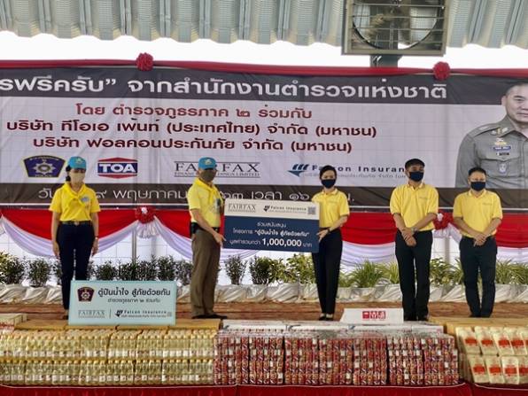 คุณโสภา กาญจนรินทร์ ประธานเจ้าหน้าที่บริหาร บริษัท ฟอลคอนประกันภัย จำกัด (มหาชน) กล่าวว่า ในนามของบริษัท ฟอลคอนประกันภัย จำกัด (มหาชน) ซึ่งเป็นบริษัทในกลุ่ม Fairfax Financial Holdings Limited (FFH) ผู้ให้บริการด้านการเงินรายใหญ่แห่งหนึ่งของโลก และเป็นผู้ลงทุนในบริษัทรับประกันภัยและบริษัทรับประกันภัยต่อในหลายภูมิภาคทั่วโลก ได้สนับสนุนเงินช่วยเหลือประเทศละประมาณ 1 ล้านบาท เพื่อบรรเทาความเดือดร้อนจากการแพร่ระบาดของโควิด-19 ซึ่งฟอลคอนประกันภัยมีความยินดีเป็นอย่างยิ่งที่ได้ร่วมเป็นส่วนหนึ่งในการสนับสนุนการเติมอาหารในตู้ปันน้ำใจ ร่วมกับตำรวจภูธรภาค 2 เนื่องจากสถานการณ์การแพร่ระบาดของโควิด-19 ทำให้ในพื้นที่จังหวัดชลบุรีและระยองบางส่วนมีผู้ได้รับผลกระทบต่อการดำรงชีวิตประจำวันเพราะรายได้ในการประกอบอาชีพลดลง หรือประสบปัญหาจากสถานประกอบการหยุดกิจการชั่วคราว ซึ่งจะเห็นได้จากจำนวนลูกจ้างที่ได้รับผลกระทบของ 2 จังหวัดนี้ อยู่ในลำดับต้นๆ ของประเทศรวมเกือบ 1.3 แสนราย* บริษัทฯ จึงได้สนับสนุนความช่วยเหลือแก่ผู้ได้รับผลกระทบจากการเหตุการณ์ดังกล่าว