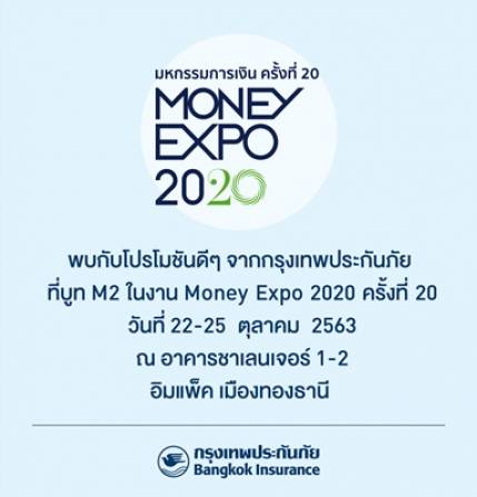 บริษัท กรุงเทพประกันภัย จำกัด (มหาชน) หรือ BKI ร่วมออกบูทในงานมหกรรมการเงินครั้งยิ่งใหญ่แห่งปี Money Expo 2020 เพื่อให้คำปรึกษาด้านการประกันภัย ทั้งประกันภัยรถยนต์ ประกันอัคคีภัย ประกันภัยโควิด คัฟเวอร์ และประกันภัยอื่นๆ โดยจัดโปรโมชันสุดพิเศษให้แก่ลูกค้า รับส่วนลดเบี้ยประกันภัยสูงสุดถึง 23% พร้อมรับของสมนาคุณฟรีอีกมากมาย อาทิ กล่องอเนกประสงค์, Travel Set, กระติกน้ำ Zojirushi ตามเงื่อนไขที่บริษัทฯ กำหนด นอกจากนี้ สำหรับผู้ที่ทำประกันภัยรถยนต์และประกันภัยสุขภาพที่มีเบี้ยประกันภัยตั้งแต่ 5,000 บาทขึ้นไป สามารถเลือกผ่อนชำระเบี้ยประกันภัย 0% นาน 3 เดือน ผ่านบัตรเครดิตที่ร่วมรายการ ได้ที่บูทกรุงเทพประกันภัย M2 ณ อาคารชาเลนเจอร์ 1-2 อิมแพ็ค เมืองทองธานี วันที่ 22-25 ตุลาคม 2563 นี้
