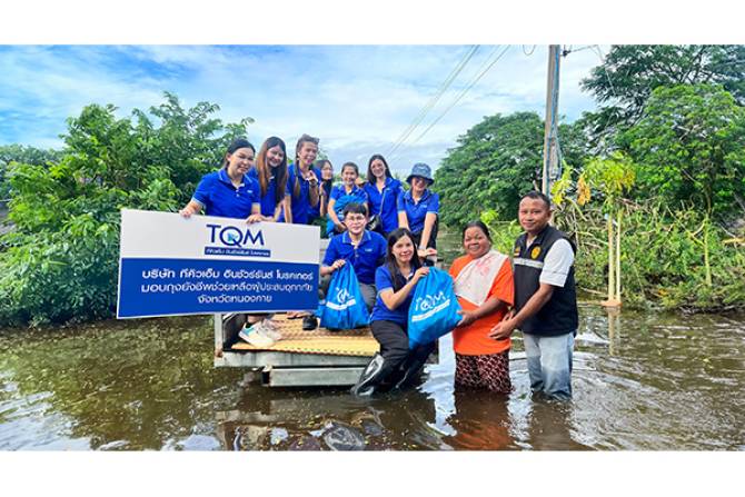 จากสถานการณ์น้ำท่วมที่เกิดขึ้นในหลายจังหวัด ได้สร้างความเสียหายให้แก่ประชาชนในวงกว้าง บริษัท ทีคิวเอ็ม อินชัวร์รันส์ โบรคเกอร์ จำกัด (TQM) มีความห่วงใยต่อพี่น้องประชาชนที่ได้รับผลกระทบ จึงได้ดำเนินการช่วยเหลือ โดยได้ผนึกกำลังกับพนักงานสาขาหนองคาย และเชียงราย ร่วมลงพื้นที่เพื่อช่วยเหลือผู้ประสบภัย ในพื้นที่ที่ถูกน้ำท่วมอย่างหนัก มีผู้คนจำนวนมากที่ไม่สามารถเดินทางออกจากที่พักได้เนื่องจากระดับน้ำที่สูง ทีมงาน TQM จึงได้มอบถุงยังชีพให้แก่ผู้ที่ยังติดอยู่ในพื้นที่ เพื่อให้ได้รับความช่วยเหลือเบื้องต้น เมื่อวันที่ 24 กันยายน ที่ผ่านมา