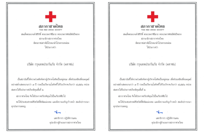 กรุงเทพประกันภัยรับประกาศเกียรติคุณจากสภากาชาด