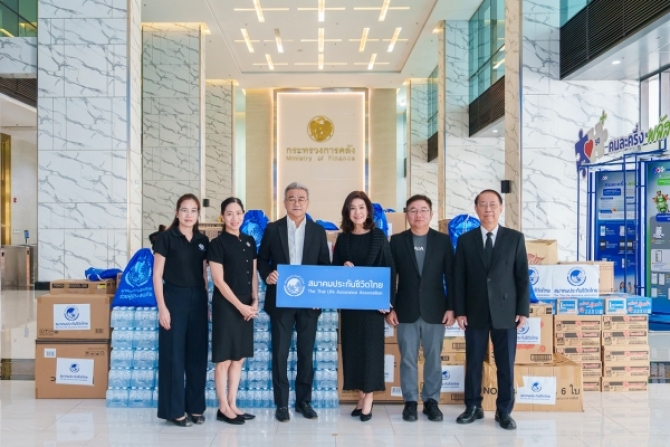 สมาคมประกันชีวิตไทย นำโดย นางนุสรา (อัสสกุล) บัญญัติปิยพจน์ นายกสมาคมประกันชีวิตไทย พร้อมคณะผู้บริหารสมาคม ร่วมมอบสิ่งของจำเป็น อุปโภคบริโภค และชุดยังชีพ เพื่อช่วยเหลือผู้ประสบอุทกภัยในพื้นที่ภาคใต้ ผ่านศูนย์วายุภักษ์รวมใจเพื่อประชาชน กระทรวงการคลัง ในการนี้ ได้รับเกียรติจาก นายอรรถพล อรรถวรเดชรองปลัดกระทรวงการคลัง เป็นผู้แทนรับมอบ ณ ชั้น 1 อาคาร 150 ปี กระทรวงการคลัง ถนนพระราม 6 เขตพญาไท กรุงเทพมหานคร เมื่อวันที่ 28 พฤศจิกายน 2568