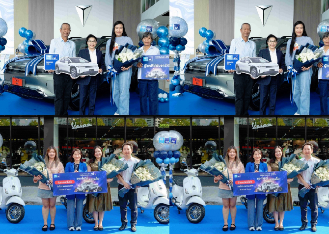 บมจ.กรุงไทย-แอกซ่า ประกันชีวิต นำโดยคุณบุปแผาวดี โอวรารินท์ ประธานเจ้าหน้าที่บริหาร ฝ่ายการตลาด (ภาพบน คนที่ 2 จากซ้าย) มอบรางวัลใหญ่ รถยนต์ DEEPAL E07 Performance AWD พร้อมอุปกรณ์ชาร์จไฟ มูลค่า 1,999,000 บาท ให้แก่ คุณภัทราวดี ขวัญยืน (ภาพบน คนที่ 3 จากซ้าย) ลูกค้าผู้โชคดีจากแคมเปญ “ฉลองครบรอบ 28 ปี กรุงไทย-แอกซ่า แจกใหญ่ แจกเต็ม” ณ ศูนย์บริการ ดีพอล อิเลคตร้า ออโตโมบิล ประดิษฐ์มนูธรรม