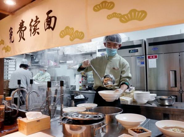 (แฟ้มภาพซินหัว : เจ้าของร้านรับออร์เดอร์ลูกค้าที่ร้านบะหมี่แห่งหนึ่งในกรุงปารีสของฝรั่งเศส)