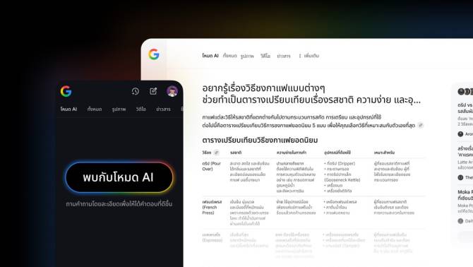 ตั้งแต่วันนี้เป็นต้นไป โหมด AI (AI Mode) ซึ่งเป็นประสบการณ์การค้นหาด้วย AI ที่มีประสิทธิภาพ พร้อมให้บริการในภาษาไทยแล้ว