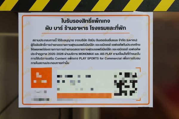 ผู้ประกอบการร้านอาหาร ผับ บาร์ และโรงแรมที่สนใจสมัครแพ็กเกจ PLAY SPORTS For Commercial กับ AIS 3BB FIBRE3 สามารถสมัครได้ตั้งแต่วันนี้ถึ งวันที่ 31 ตุลาคม 2568 สอบถามรายละเอียดเพิ่มเติม