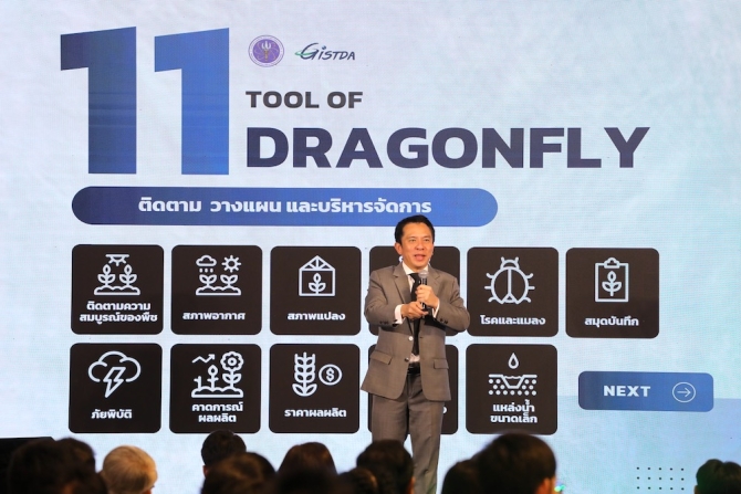 26 พฤศจิกายน 2568 กระทรวงการอุดมศึกษา วิทยาศาสตร์ วิจัย และนวัตกรรม หรือ อว. โดยสำนักงานพัฒนาเทคโนโลยีอวกาศและภูมิสารสนเทศ (องค์การมหาชน) หรือ GISTDA เปิดตัวแพลตฟอร์มเกษตรอัจฉริยะ หรือDragonfly ที่นำเทคโนโลยีอวกาศและภูมิสารสนเทศ มาเสิร์ฟถึงมือผู้ใช้งานในระดับบุคคล โดยเฉพาะ “เกษตรกรไทย” ที่ต้องการก้าวผ่านจากการประกอบอาชีพด้วยวิธีการดั้งเดิมไปสู่การเป็น “เกษตรกรยุคใหม่” หรือ “Smart Farmer” โดยมี ดร.ปกรณ์ อาภาพันธุ์ ผู้อำนวยการ GISTDA ขึ้นกล่าว “อนาคตเกษตรดิจิทัลสู่การใช้ประโยชน์จาก Dragonfly อย่างยั่งยืน” รวมถึง Special Talk แลกเปลี่ยนความคิดเห็นจากนักวิชาการผู้เชี่ยวชาญมาก ประสบการณ์ในหัวข้อ “AgriTech & Climate Change Management: นวัตกรรม เพื่ออนาคตของเกษตรกรไทย” โดย นายชิษณุชา บุดดาบุญ อดีตรองอธิบดีกรมการข้าว ดร.ปกรณ์ เพ็ชรประยูร ผู้อำนวยการสำนักประยุกต์และพัฒนาภูมิสารสนเทศจาก GISTDA และ นางนิติภา วรพันธ์ตระกูล ผู้อำนวยการกลุ่มประเมินผลการลดก๊าซเรือนกระจก จากกรมการเปลี่ยนแปลงสภาพภูมิอากาศและสิ่งแวดล้อม ณ สามย่านมิตรทาวน์ กรุงเทพฯ