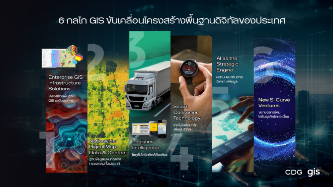 เพื่อให้การขับเคลื่อนเกิดผลในทุกมิติ จีไอเอสมุ่งเสริมความพร้อมทั้งด้านข้อมูลเชิงพื้นที่ เทคโนโลยี บุคลากร และกระบวนการทำงาน โดยต่อยอดจากประสบการณ์ด้านระบบภูมิสารสนเทศระดับองค์กรที่ร่วมขับเคลื่อนประเทศไทยมากว่า 30 ปี พร้อมผนึกความร่วมมือข้ามธุรกิจในกลุ่มบริษัทซีดีจี เพื่อเชื่อมต่อเทคโนโลยีและผลลัพธ์ที่จะสร้างความได้เปรียบแก่องค์กร และเพิ่มขีดความสามารถในการสนับสนุนภารกิจสำคัญของประเทศให้เกิดผลสูงสุด