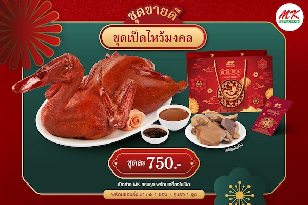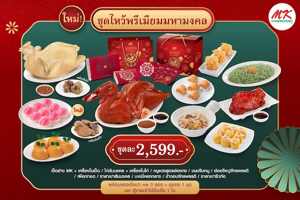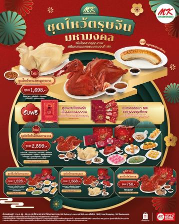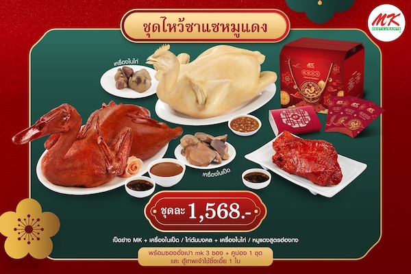 ซึ่งตรุษจีนปีนี้ ทาง MK Restaurant ก็ได้มีการจัดเตรียมเซตไหว้ เสริมมงคล เพิ่มความเฮง ด้วยของไหว้คุณภาพดี สะอาดปลอดภัย ใส่ใจสุขภาพ และถูกหลักการไหว้ ตอบโจทย์ทุกความต้องการของทุกคนในครอบครัว การันตีด้วยจำนวนเซ็ตไหว้ที่ขายมาแล้วกว่า 40,000 ชุด และยอดขายเมื่อปีที่แล้วที่มากขึ้นกว่าปีก่อนถึง 25% คาดปีนี้จะมียอดขายที่มากขึ้นอีกอย่างต่อเนื่อง