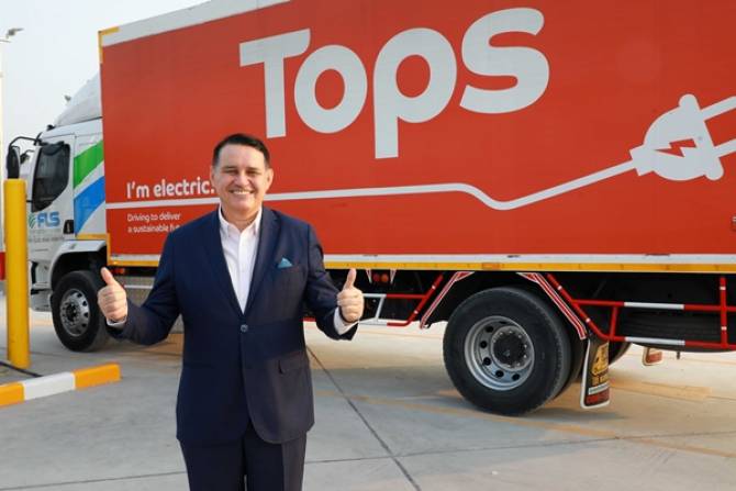 “ล่าสุด ท็อปส์จึงได้เดินหน้าสานต่อพันธกิจด้านความยั่งยืน ด้วยการเปิดตัว รถขนส่งพลังงานไฟฟ้า (EV TRUCK) ขนาด 10 ล้อควบคุมอุณหภูมิและ 18 ล้ออุณหภูมิปกติ เพิ่มเติมรวมอีก 4 คัน ผ่านความร่วมมือครั้งสำคัญกับ FLS Group ผู้เชี่ยวชาญด้านห่วงโซ่อุปทานระดับโลกที่มาพร้อมโซลูชันโลจิสติกส์แบบไร้รอยต่อ เพื่อกระจายสินค้าไปยังร้านท็อปส์ในพื้นที่ต่างจังหวัด นับเป็นอีกก้าวสำคัญในการเพิ่มขีดความสามารถในการใช้รถขนส่งพลังงานไฟฟ้า (EV TRUCK) ในระยะทางที่ไกลมากขึ้นเพื่อให้ครอบคลุมการกระจายสินค้าในพื้นที่ต่างจังหวัดทั่วประเทศ และเป็นการยกระดับการใช้รถพลังงานไฟฟ้า (EV TRUCK) ให้ครอบคลุมการกระจายสินค้าควบคุมอุณหภูมิอีกด้วย ซึ่งจะเป็นการลดผลกระทบต่อสิ่งแวดล้อมอย่างเป็นรูปธรรม”