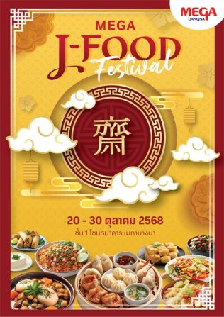 - เมกาบางนา ชวนอิ่มบุญ อิ่มใจ อิ่มอร่อย ต้อนรับเทศกาลกินเจ ในงาน “MEGA J-FOOD FESTIVAL” 21 ต.ค. 2568