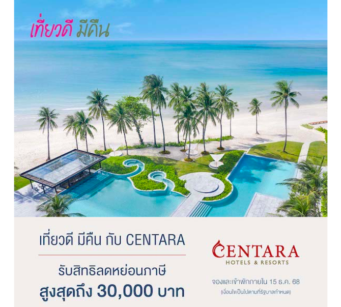 - เซ็นทาราร่วมโครงการ “เที่ยวดี มีคืน” มอบสิทธิลดหย่อนภาษีสูงสุด 30,000 บาท 29 ต.ค. 2568