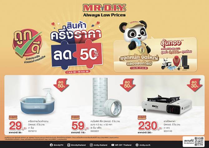 มิสเตอร์. ดี.ไอ.วาย. ปล่อยแคมเปญ “สินค้าครึ่งราคา ลด 50%” สานต่อแนวคิดช่วยคนไทยลดค่