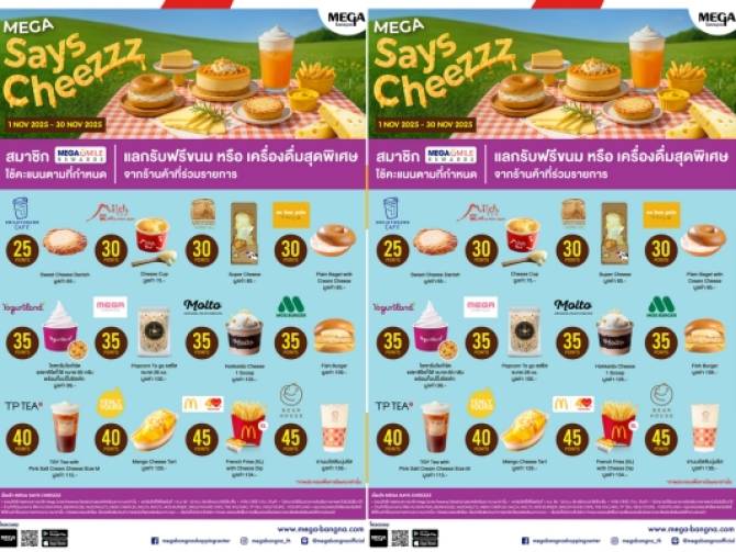 เมกาบางนา ชวนอร่อยละลายไปกับความฟินสุดชีส ในแคมเปญ “MEGA SAYS CHEEZZZ” วันนี้–30 พ.ย. 68 ที่ศูนย์การค้าเมกาบางนา