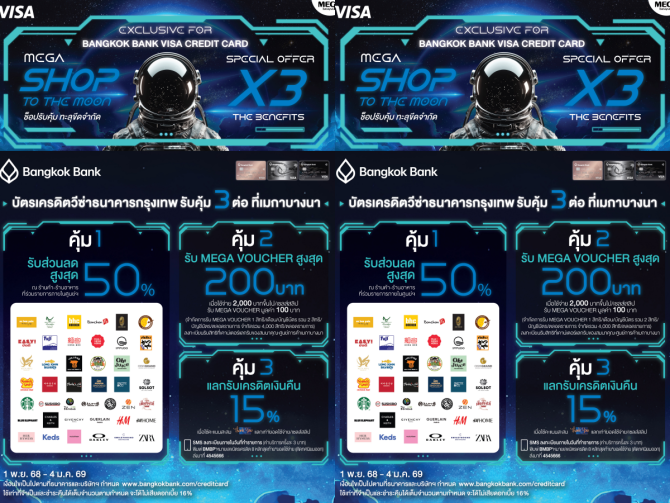 เมกาบางนา ร่วมกับ บัตรเครดิตวีซ่าแบงก์กรุงเทพ ส่งแคมเปญ “MEGA SHOP TO THE MOON”มอบสิทธิพิเศษถึง 3 ต่อสุดคุ้ม ระหว่างวันที่ 1 พ.ย. 68 – 4 ม.ค. 69