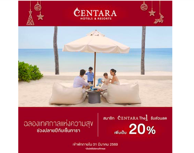 - เซ็นทารามอบของขวัญต้อนรับเทศกาลสำหรับสมาชิก CentaraThe1 ส่วนลดสมาชิกเพิ่มขึ้นเป็น 20% 21 พ.ย. 2568