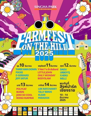 - สายคอนเสิร์ตเตรียมขึ้นเชียงราย 10–14 ธ.ค.นี้ "Farm Festival On The Hill" สิงห์ปาร์ค เชียงราย 24 พ.ย. 2568