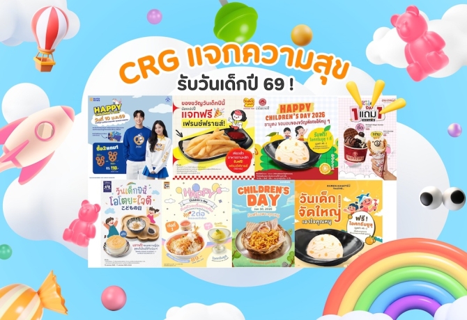 ต้อนรับวันเด็กแห่งชาติปี 2569 บริษัท เซ็นทรัล เรสตอรองส์ กรุ๊ป จำกัด (ซีอาร์จี) ขอร่วมสร้างความทรงจำแสนอบอุ่นให้กับเด็ก ๆ และครอบครัว ด้วยโปรโมชั่นและของขวัญที่คัดสรรมาเป็นพิเศษ พร้อมชวนทุกคนมาอิ่มอร่อยและสนุกไปกับเมนูคุณภาพจากร้านอาหารในเครือ ที่ตั้งใจส่งต่อความสุขในทุกช่วงเวลา เริ่มต้นความอร่อย