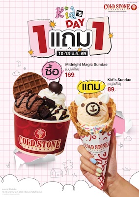 โคล สโตน ครีมเมอรี่ ขอร่วมฉลองวันเด็กที่น้องๆหนูๆทุกคนรอคอย กับ โปรโมชั่นสุดพิเศษ เมื่อซื้อเมนู Midnight Magic Sundae ในราคาพิเศษ 169 บาท (ปกติ 258 บาท) รับฟรีไปเลย Kid's Sundae เมนูใดก็ได้ไปอร่อยคูณสอง ตั้งแต่ วันที่ 10 ถึง 13 มกราคม 2569 ที่ร้านโคล สโตน ครีมเมอรี่ทุกสาขา (เงื่อนไขเป็นไปตามที่แบรนด์กำหนด)