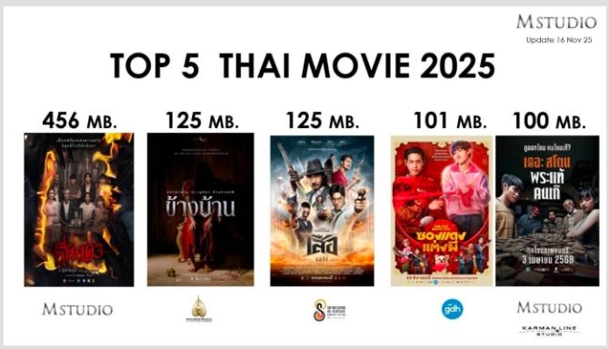 - ‘M STUDIO’ ชี้ปี 2569 ปีทองหนังไทยตอกย้ำผู้นำตลาด แชมป์ Box Office 3 ปีซ้อน ครองส่วนแบ่งตลาดหนังไทยกว่า 60% 28 ม.ค. 2569