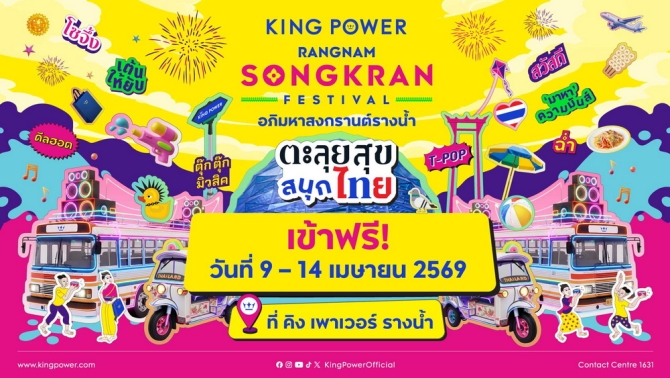 - คิง เพาเวอร์ จัด “อภิมหาสงกรานต์รางน้ำ THE JOY OF THAI ตะลุยสุข สนุกไทย” 16 มี.ค. 2569