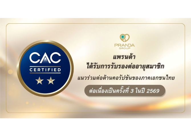 บริษัท แพรนด้า จิวเวลรี่ จำกัด (มหาชน) ได้รับการต่ออายุการรับรองเป็นสมาชิกของแนวร่วมต่อต้านคอร์รัปชันของภาคเอกชนไทย (CAC) ต่อเนื่องเป็นครั้งที่ 3 ในปี 2569 โดยมีระยะเวลาการรับรอง 3 ปี ระหว่างวันที่ 31 มีนาคม 2569 ถึงวันที่ 31 มีนาคม 2572 สะท้อนถึงความมุ่งมั่นในการดำเนินธุรกิจภายใต้หลักธรรมาภิบาล ความโปร่งใส และความรับผิดชอบต่อผู้มีส่วนได้เสียในทุกมิติ