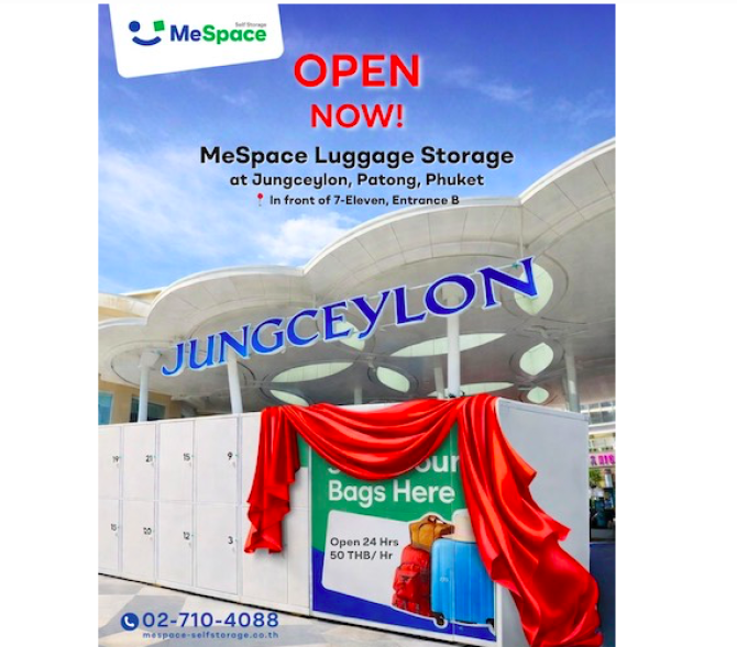 ล่าสุด พร้อมขยายจุดให้บริการภายในศู นย์การค้าฯ เพิ่มขึ้น ตั้งอยู่บริเวณ หน้าร้าน 7-Eleven ชั้นใต้ดิน โซนเดอะจังเกิ้ล เพื่อให้บริ การแก่นักท่องเที่ยวทั้ งชาวไทยและชาวต่างชาติ รวมถึงลูกค้าทั่วไปที่ต้ องการฝากสัมภาระระหว่างการเดิ นทางท่องเที่ยวภายในศูนย์การค้ าฯ หรือภายในป่าตอง ได้รับความสะดวกสบายและปลอดภัย สามารถรองรับการฝากสัมภาระได้ หลากหลายขนาด ตั้งแต่ของชิ้นเล็ก เช่น ถุงช้อปปิ้ง กระเป๋าเป้ ไปจนถึงกระเป๋าเดินทางขนาดใหญ่ พร้อมให้บริการทุกวัน ตลอด 24 ชั่วโมง อัตราค่าบริการเริ่มต้นเพียงชั่ วโมงละ 50 บาท โดยสามารถติดตามหรื อสอบถามรายละเอียดเพิ่มเติมได้ ที่ mespace-selfstorage.co.th หรือ โทร. 02-710-4088