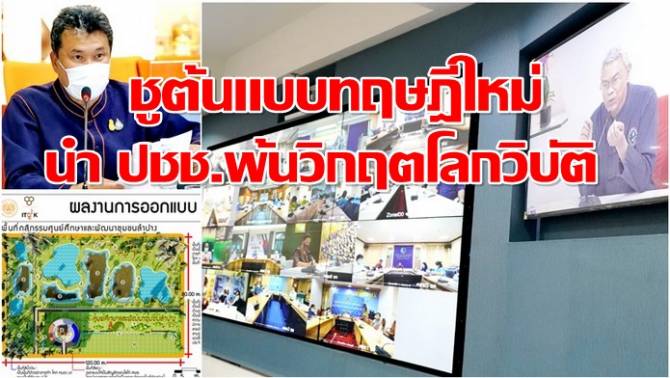 ที่กรมการพัฒนาชุมชน นายสุทธิพงษ์ จุลเจริญ อธิบดีกรมการพัฒนาชุมชน ได้จัดการประชุมผ่านระบบวีดิทัศน์ทางไกล (Video Conference) มอบนโยบายการขับเคลื่อนหลักทฤษฎีใหม่ของพระบาทสมเด็จพระเจ้าอยู่หัว รัชกาลที่ 9 ประยุกต์สู่ “โคก หนอง นา โมเดล” เพื่อสื่อสารสร้างความรู้ความเข้าใจในการขับเคลื่อนงานฯ แก่เจ้าหน้าที่พัฒนาชุมชน 76 จังหวัด และเจ้าหน้าที่พัฒนาชุมชน ศูนย์ศึกษาและพัฒนาชุมชน 11 แห่ง โดยเชิญผู้เชี่ยวชาญในเรื่อง โคกหนองนา โมเดล ประกอบด้วย ดร.วิวัฒน์ ศัลยกำธร ประธานมูลนิธิกสิกรรมธรรมชาติมาบเอื้อง ผู้บุกเบิกการประยุกต์ทฤษฎีใหม่สู่โคกหนองนาโมเดล ผศ.พิเชฐ โสวิทยสกุล อดีตคณบดีคณะสถาปัตยกรรมศาสตร์ สถาบันเทคโนโลยีพระจอมเกล้า วิทยาเขตเจ้าคุณทหารลาดกระบัง ผู้เชี่ยวชาญด้านการออกแบบพื้นที่โคกหนองนาโมเดล รศ.วรวรรณ โรจนไพบูลย์ อาจารย์คณะสถาปัตยกรรมศาสตร์ สถาบันเทคโนโลยีพระจอมเกล้าเจ้าคุณทหารลาดกระบัง ที่ปรึกษากรมการพัฒนาชุมชน และนายเอก วรรณประทีป รองผู้อำนวยการ สถาบันบริหารจัดการธนาคารที่ดิน (องค์การมหาชน) มาร่วมให้แนวทาง หลักการ ในการขับเคลื่อนงานฯ ให้สามารถทำได้จริงอย่างยั่งยืน