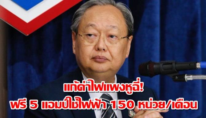 เคาะแล้วแก้ปมอยู่บ้านเพื่อชาติค่าไฟแพงหูฉี่ ฟรี 5 แอมป์ใช้ไฟฟ้า 150 หน่วย/เดือน