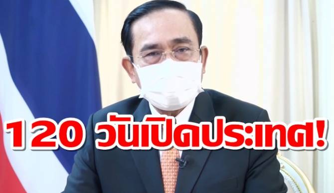 วันนี้ ผมขอแจ้งให้ทุกท่านทราบว่า ผมตั้งเป้าเอาไว้ว่าประเทศไทยจะต้องเปิดประเทศทั้งประเทศ ให้ได้ภายใน 120 วัน นับจากวันนี้ส่วนเมืองท่องเที่ยวที่สำคัญๆ หากพร้อมได้เร็วกว่า ก็ควรทยอยเปิดให้ได้เร็วกว่านั้น