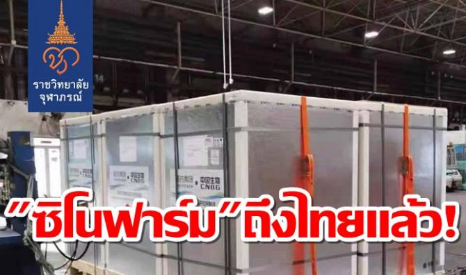 เมื่อวันที่ 20 มิ.ย.2564 เพจเฟซบุ๊ก รพ.จุฬาภรณ์ ราชวิทยาลัยจุฬาภรณ์ ได้โพสต์ข้อความระบุว่า 20 มิถุนายน 2564 : วัคซีนซิโนฟาร์มล็อตแรกซึ่งขนส่งโดยเที่ยวบินขนส่งสินค้า TG8669 เที่ยวแรกจำนวน 5 แสนโดส เมื่อเวลาประมาณ 06.00 น. จากเมืองปักกิ่ง สาธารณรัฐประชาชนจีน เดินทางถึงประเทศไทยแล้ว