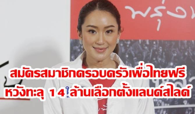 พท. ชู "แพทองธาร"หัวหน้าครอบครัวเพื่อไทย วางเป้าหาสมาชิกทะลุ 14 ล้านคนสมัครฟรี หวังเลือกตั้งแลนด์สไลด์ แง้มนโยบายเติมเงินเข้ากระเป๋าแบบมีเกียรติ